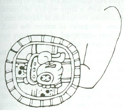 Mayan “arm shield”, from Stela 17, Dos Pilas, Tetexbatun, Guatemala, Around A.D. 733; from William J. Hamblin, “Armor in the Book of Mormon", p. 415; in Warfare in the Book of Mormon, edited by Stephen D. Ricks & William J. Hamblin, (Provo, Utah: Deseret Book Co. and FARMS, 1990).